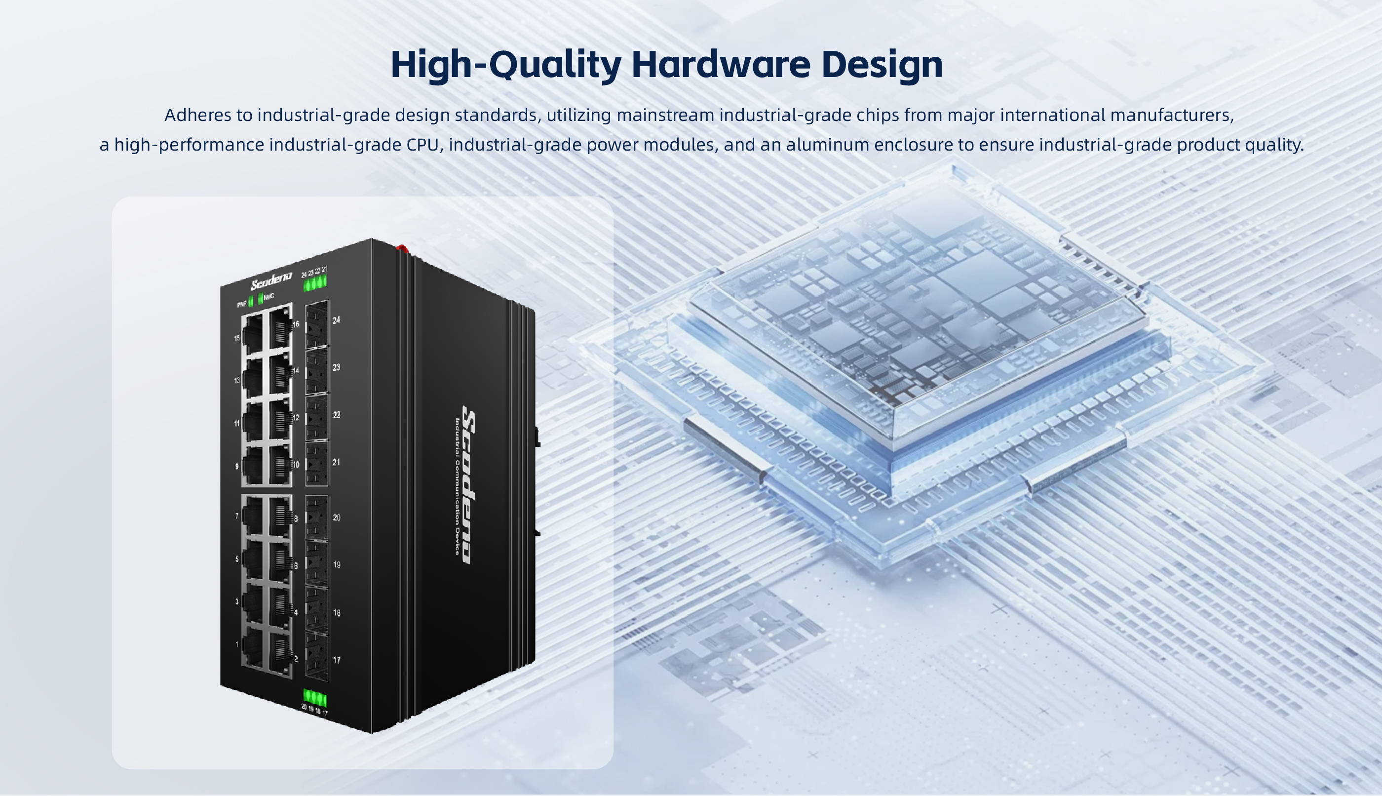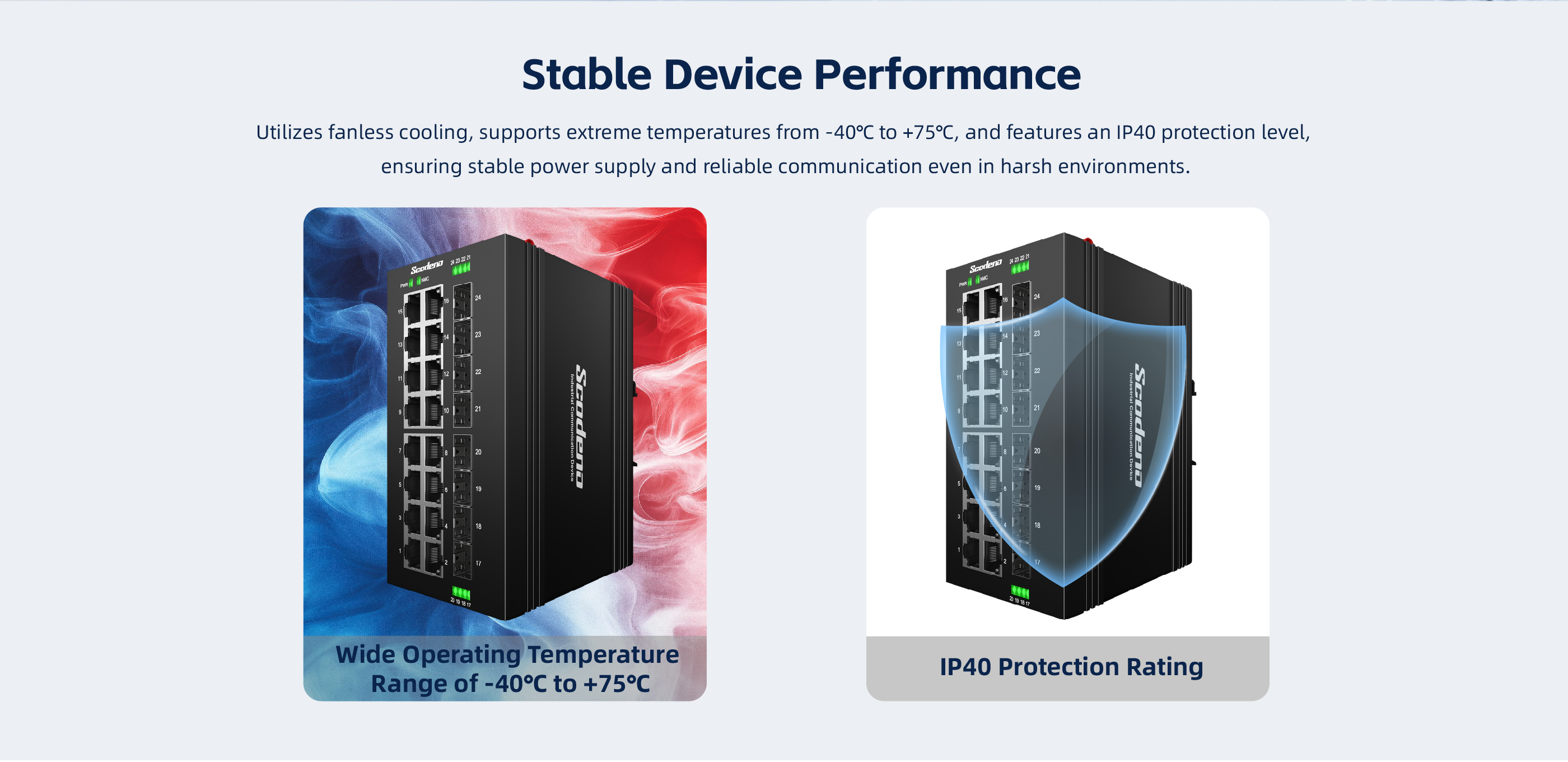 and 16 units of 10/100/1000Base-T management. Through fanless cooling