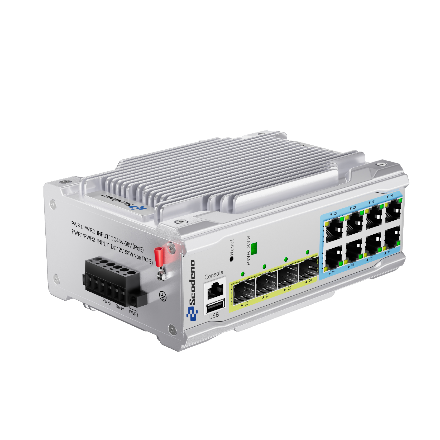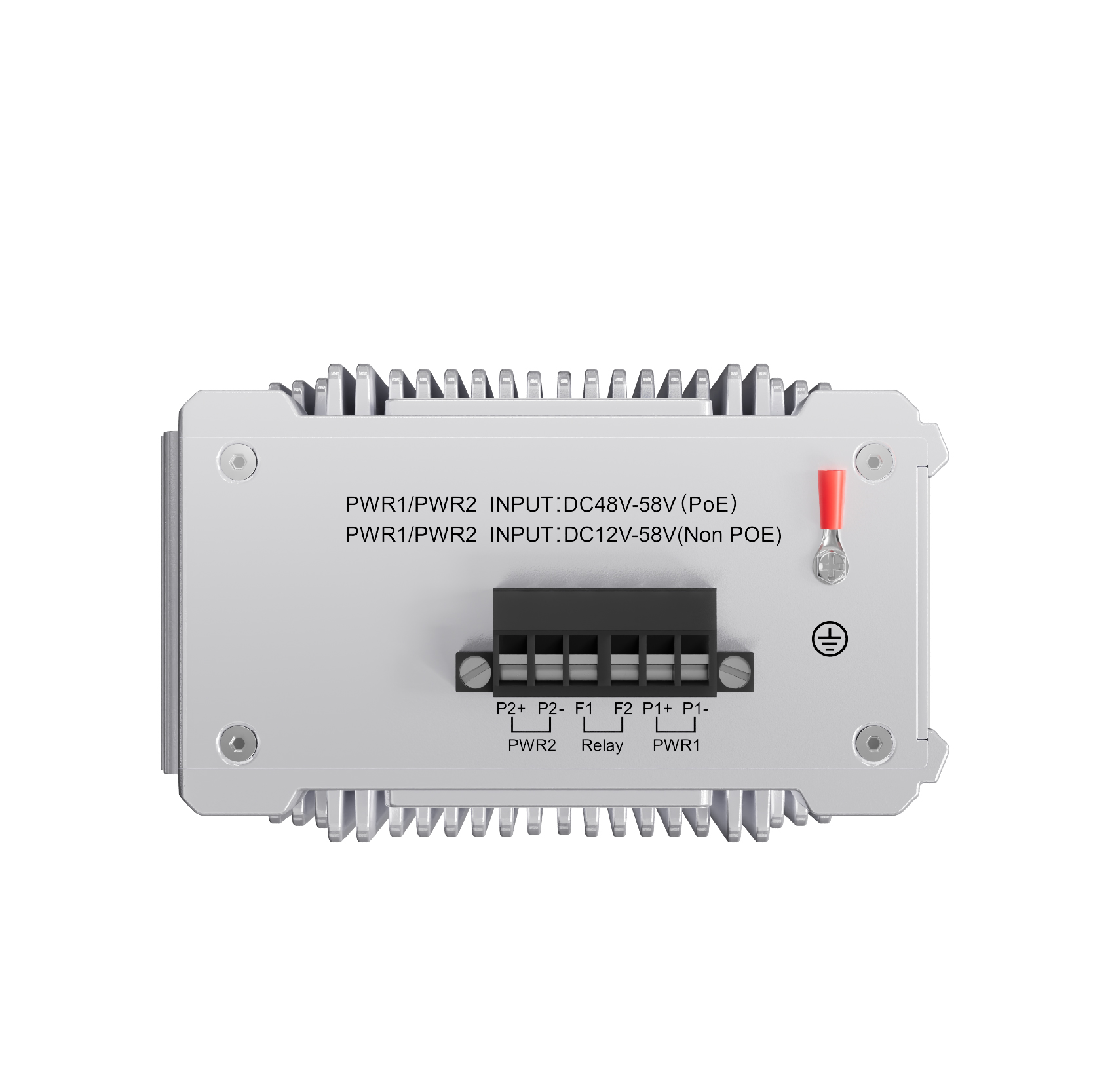 This device is a 8-port Gigabit L2+ industrial switch, which provides excellent industrial grade quality such as high/low temperature resistance and lightning protection through fanless heat dissipation circuit design, IP50 protection, wide range working environment temperature, and high protection level technology; Moreover,